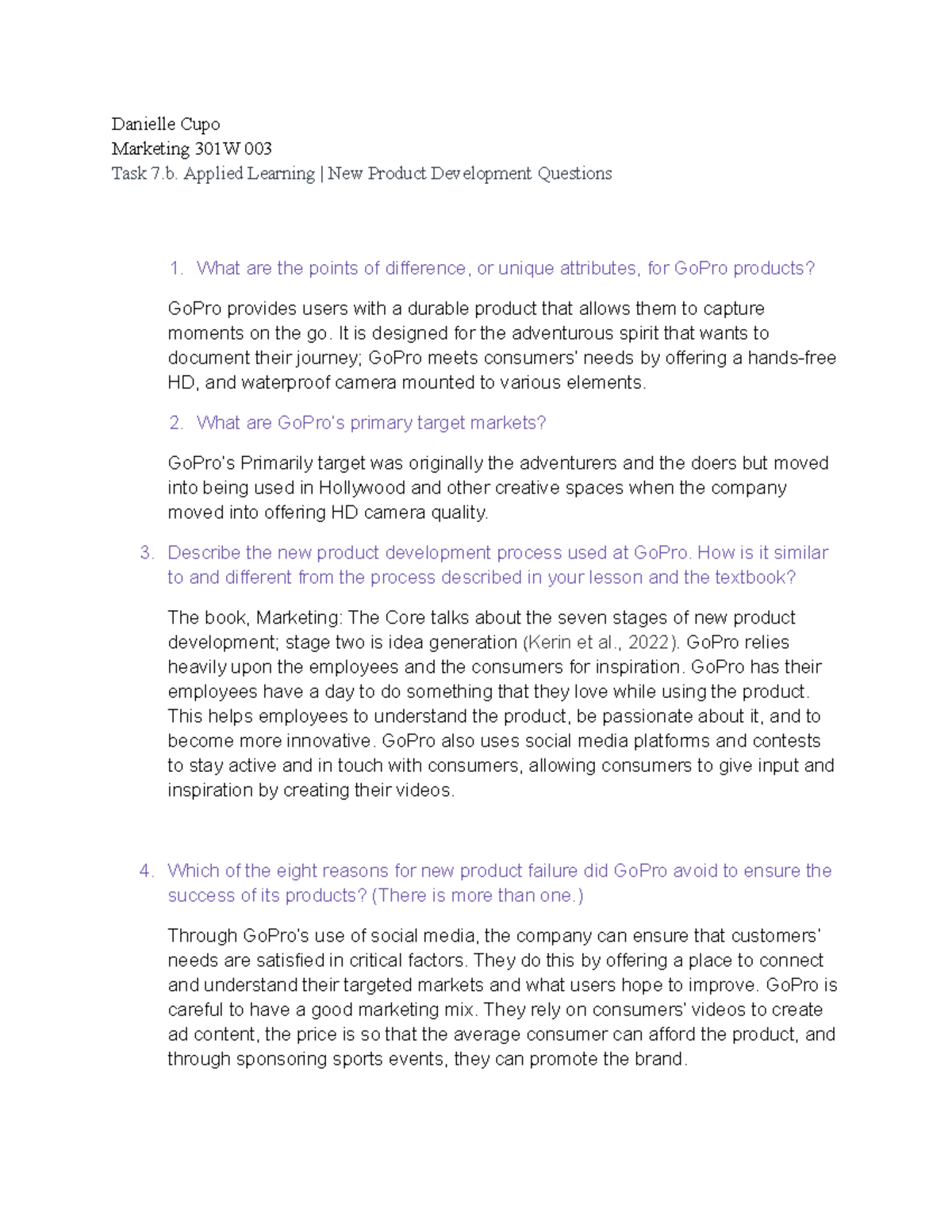 Task 7 B Applied Learning New Product Development Questions Danielle Cupo Marketing 301w 003 Task Studocu